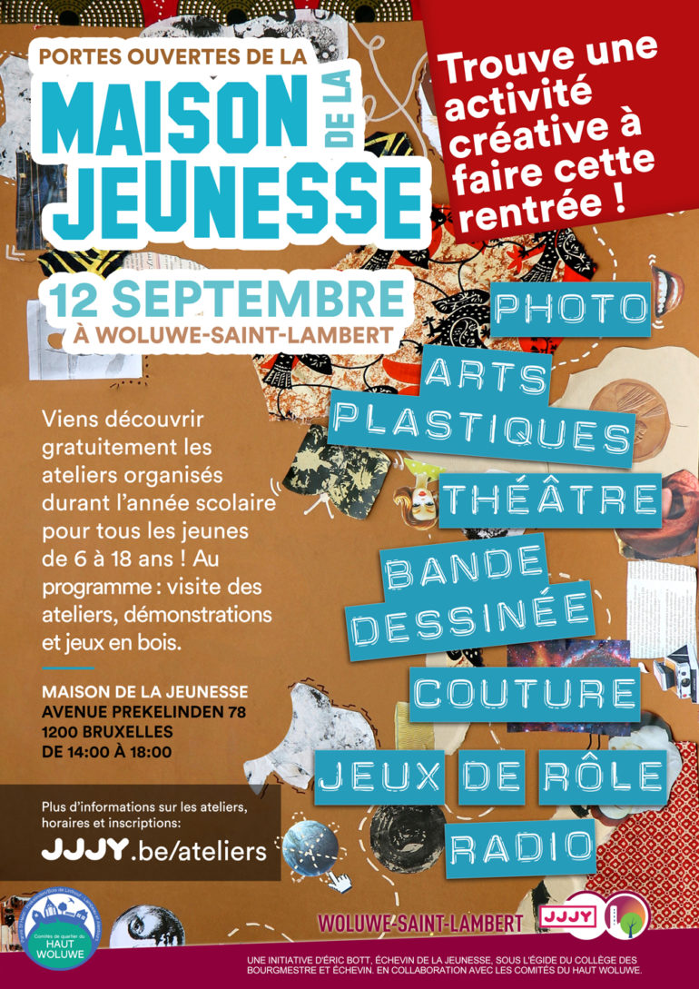 Le service Jeunesse • JJJY vous propose ce dimanche 12 septembre 2021 sa traditionnelle « Journée portes ouvertes » à la Maison de la Jeunesse (avenue Prekelinden 78) consacrée à la présentation des activités qui y sont organisées tout au long de l’année. Des ateliers d’initiation à chaque activité y seront proposés au public de 14h à 18h.